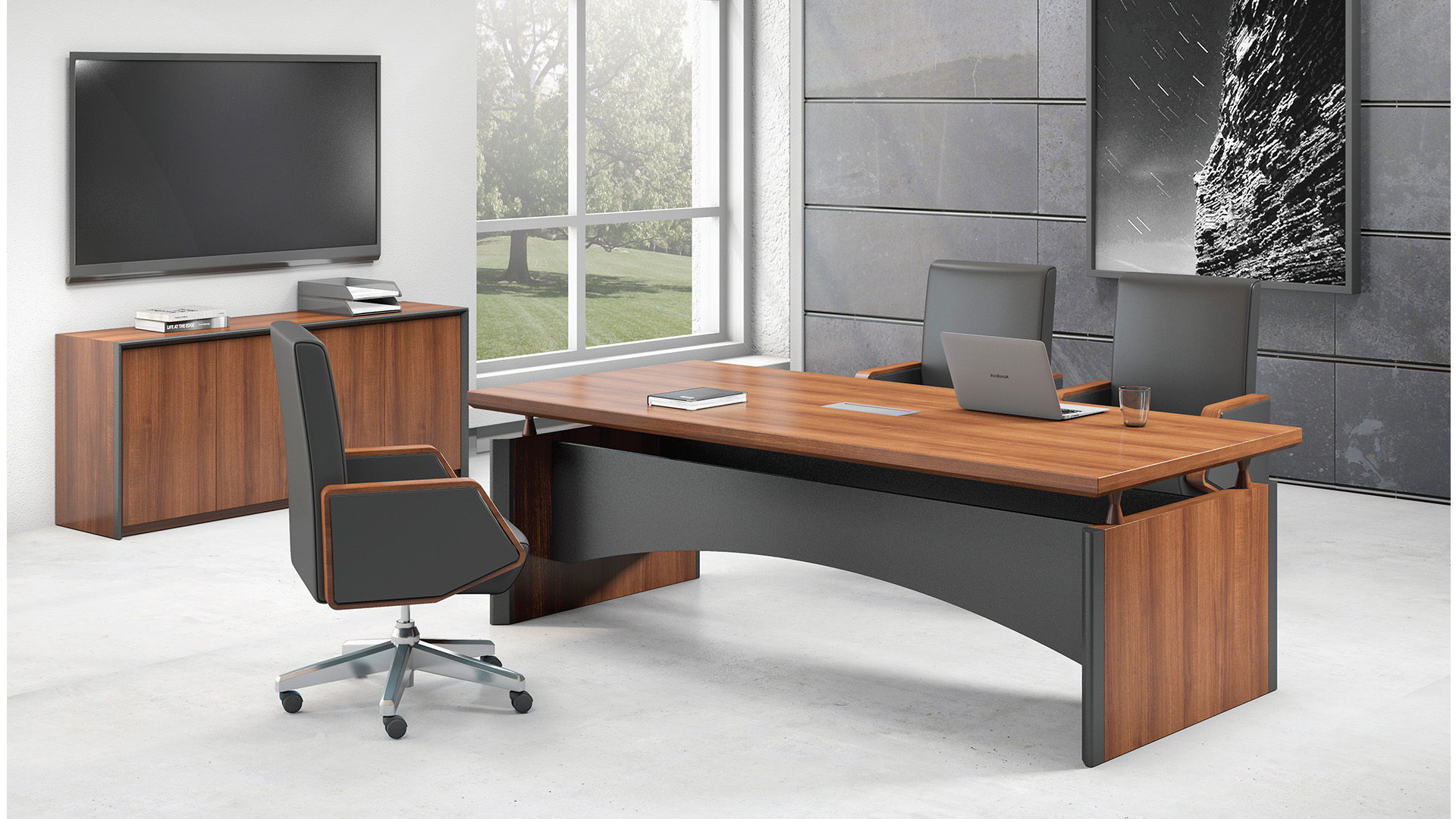 悬浮桌面搭配单独侧柜,赋予产品外观简约、结构稳重的视觉感受。