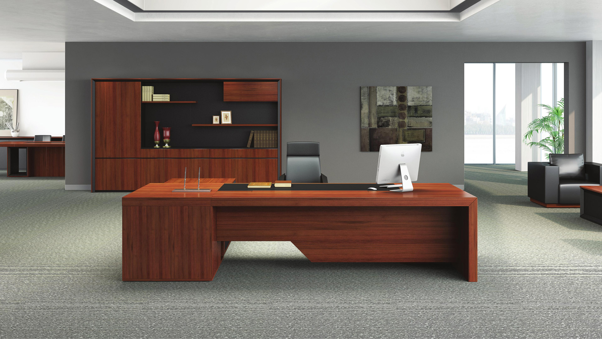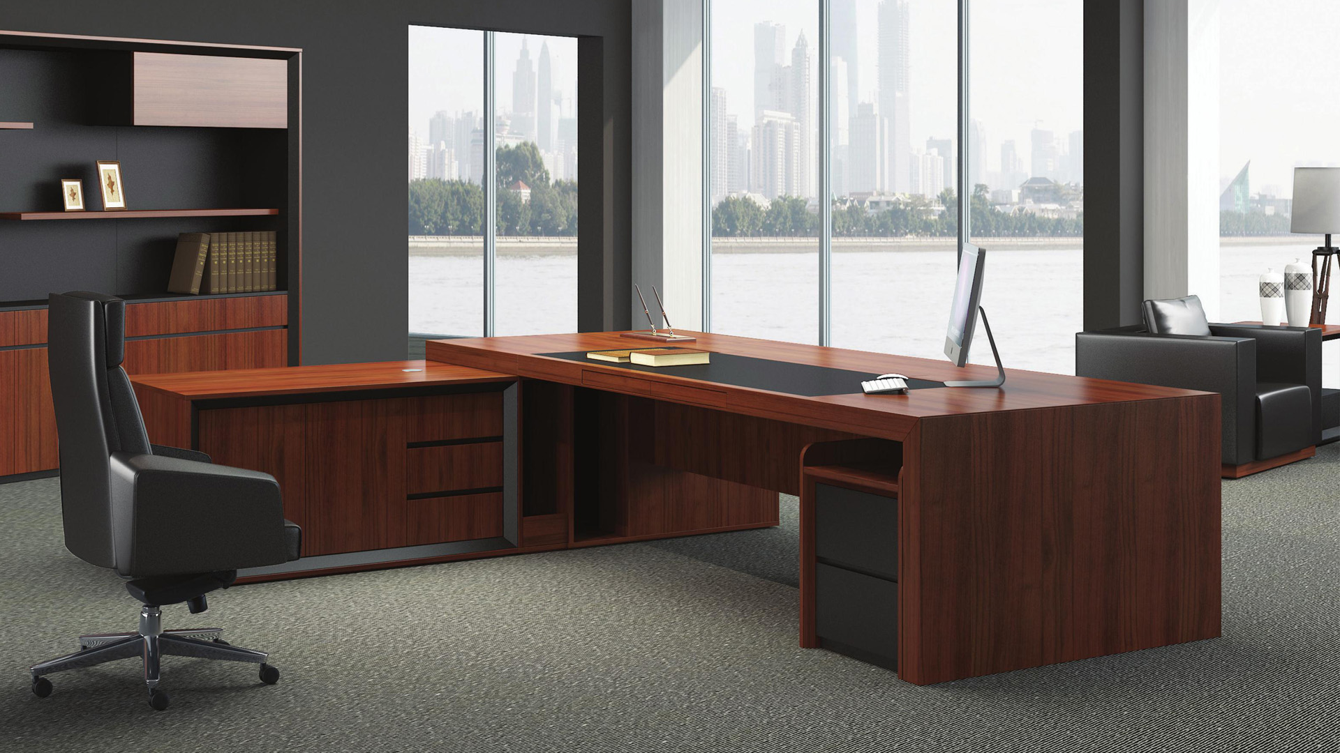 细腻的木纹肌理大气自然,摩登的黑色皮板独特有韵味,渲染出空间瑰丽、高雅的气度。
