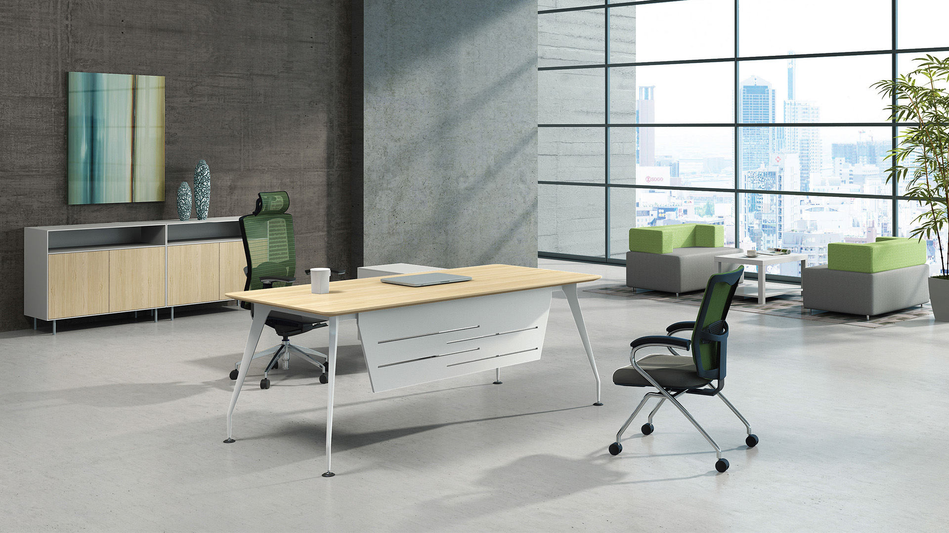 薄板桌面搭配独特钢脚设计,明快舒畅,百搭百变。