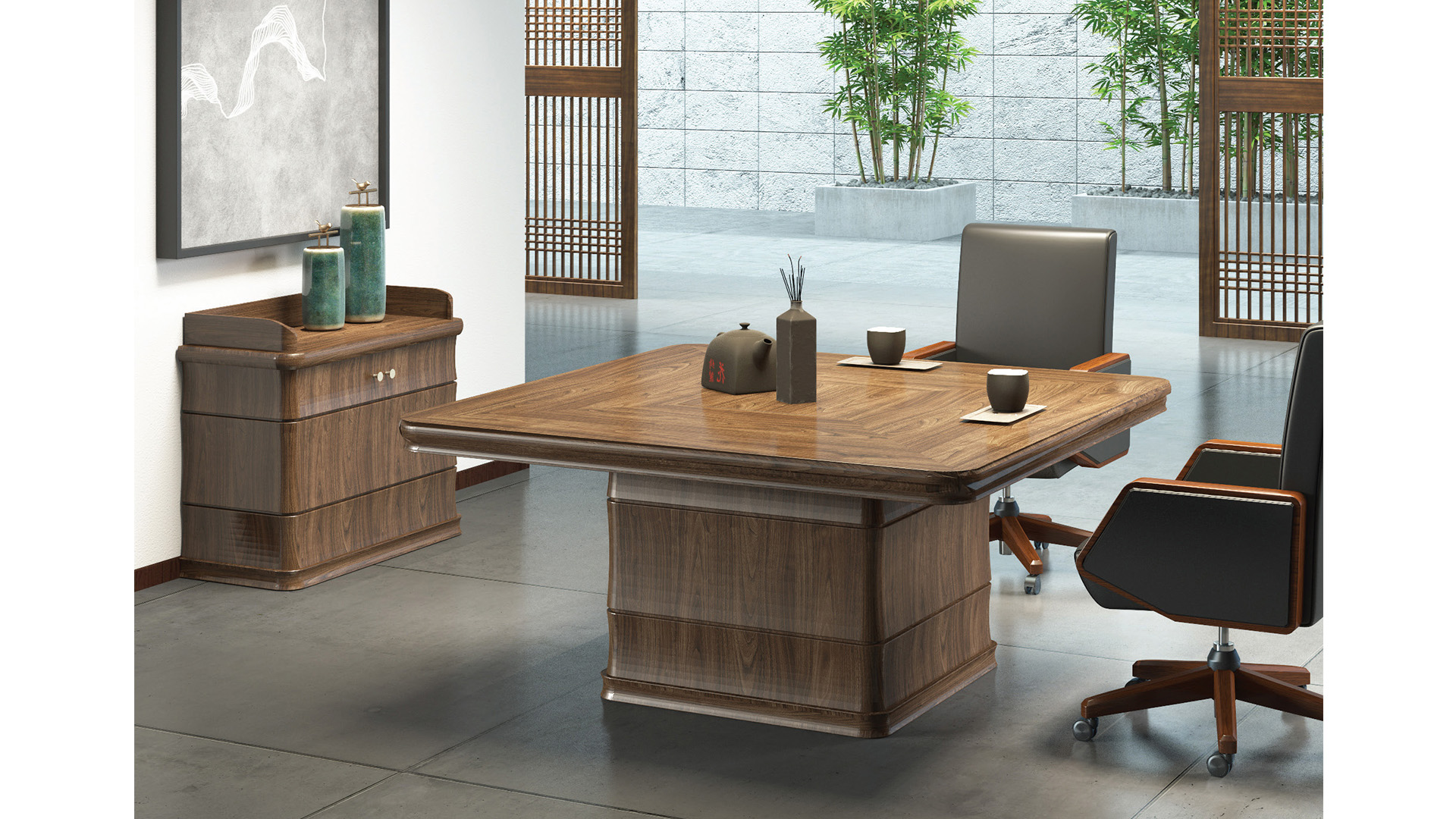 桌腿设计灵感来源于竹,曲面节段的外观,根基像竹一般稳固。